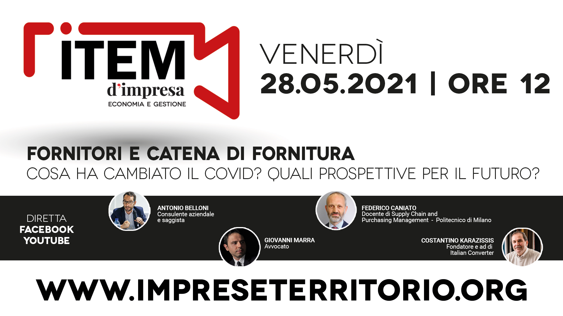 Tre le autorevoli voci che proveranno a fare chiarezza su un tema che rischia di travolgere le Pmi: Federico Caniato, docente di supply chain e purchasing management del Politecnico di Milano; Antonio Belloni, esperto di dinamiche aziendali, consulente e saggista; Giovanni Marra, avvocato consulente di Artser, la società di servizi di Confartigianato Varese; Costantino Karazissis, fondatore e titolare della Italian Converter di Vigevano.