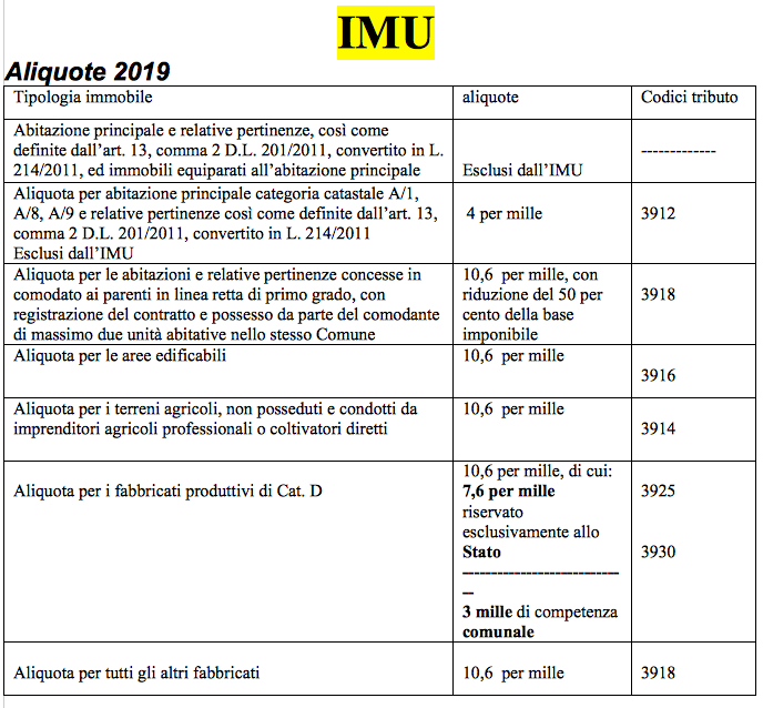 Per quanto concerne l’Imu, l’aliquota applicata del 10,6 per mille è in vigore dal 2013, ed è stata soggetta al blocco degli aumenti dei tributi locali fino allo scorso 31 dicembre. Nell’anno in corso, pur a fronte del via libera agli incrementi, non vi sono state variazioni. «E non prevediamo aumenti, con riferimento al bilancio triennale 2019-2021» aggiunge il vicesindaco Antonello Galiani. Da segnalare che è stata confermata, con riferimento all’esercizio finanziario 2019, «la detrazione per abitazione principale, applicabile esclusivamente alle abitazioni di Cat. A/1, A/8 e A/9, agli alloggi regolarmente assegnati dagli Istituti autonomi per le case popolari (IACP) e agli eventuali immobili di edilizia residenziale pubblica», nell’importo di 200 euro.