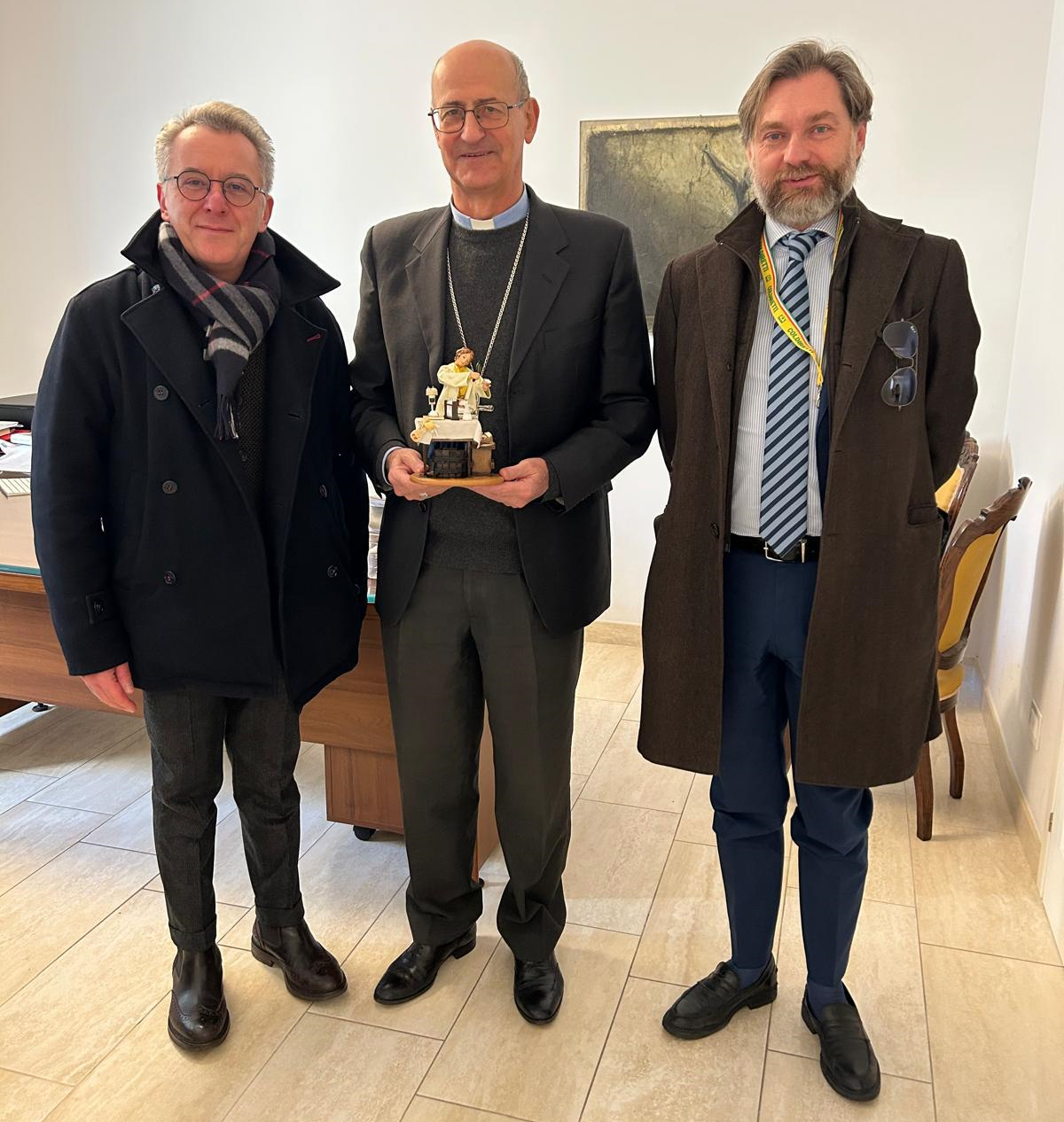 Un gesto semplice, ma carico di significato: a Vigevano, il segretario generale di Confartigianato Imprese Lomellina, Roberto Gallonetto, e il direttore di Coldiretti, Antonio Tessari, hanno consegnato al vescovo, monsignor Maurizio Gervasoni, la statuetta del Presepe realizzata da Fondazione Symbola, Confartigianato e Coldiretti.